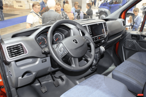 Слева от него находятся физические кнопки управления, ниже – компактная консоль управления климатом. Справа от руля размещается кнопка запуска двигателя, а вот отсеки для мелочей, пусть и сменили свою форму, но остались на своих местах, поэтому привыкать к иной системе хранения водителю ГАЗели точно не придëтся.