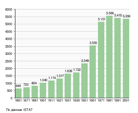 Население составляет 5901 человек (2008 г.), плотность населения составляет 1 216,70 чел./км². Занимает площадь 5 км². Почтовый индекс — 61011. Телефонный код — 0541.
