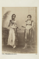 У некоторых костюм состоит из кисейного туба, надетого поверх рубашки, шинтиян[6] и тархи из муслина или крепа. Все они носят массу украшений: бусы, ручные и ножные браслеты, цепочки из золотых монет вокруг головы и часто кольцо в носу; гавази обязательно красятся хной и кухлем».