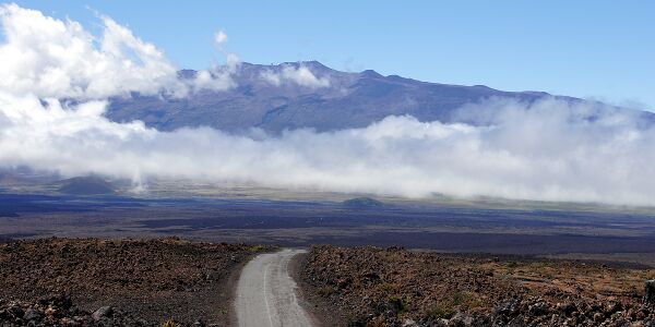 - Крупнейший вулкан на островах — Мауна-Лоа занимает площадь около 5200 км²[5], что составляет более половины острова; это крупнейший по площади надводный активный вулкан.