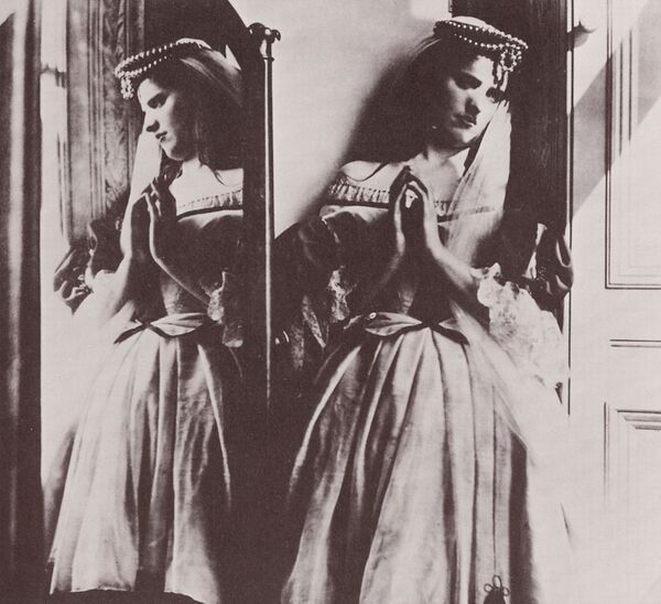 Мейвор обращала внимание на некоторые отдельные приёмы изображений Гаварден дочерей перед зеркалом: на одной фотографии «настоящая» Клементина скромно стоит сбоку от зеркала, а «отражённая» Клементина пристально смотрит на зрителя анфас, при этом обе касаются рук друг друга; на изображении Клементины в восточном платье, стоящей перед зеркалом в облегающем бюстгальтере, головном уборе и вуали, зритель обнаруживает размытость «настоящей» девушки, которая резко контрастирует с её чётким зеркальным отражением, сделанным в фокусе, отражение Клементины снова даёт более широкий обзор лица и тела Клементины[59].