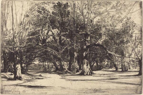 Вирджиния Додье отмечала влияние идиллии сельской жизни в поместье Дандрам на раннее творчество фотографа. Снимки этого времени подчёркивают романтические особенности холмистых пастбищ с пасущимися коровами, деревьев, нависших над рекой, грозных утёсов карьера. Часто в пейзажах появляются муж и дети Гаварден. В фотографиях нет намёка на социальные конфликты или даже на обеспокоенность местного населения своим материальным положением[42]. В то же самое время в поместье Дандрам работал художник и гравёр Френсис Сеймур Хейден. Некоторые из самых известных гравюр Хейдена — это пейзажи Дандрама, которым соответствуют фотографии леди Гаварден. Додье предполагала, что дружеские связи Хейдена с Гаварденами, вероятно, установились после того, как он, будучи хирургом, стал принимать роды Клементины (предположительно, это произошло около 1860 года). Именно с этого времени Хейден начал писать пейзажи на пленэре. Леди Гаварден и Хейден могли даже работать вместе. Помимо использования пейзажных сюжетов и мотивов со снимков леди Гаварден[Прим 5], Хейден также напрямую (по крайней мере в двух случаях) заимствовал сцены из её фотографий дочерей для создания жанровых картин, достаточно редких в его творчестве. Он сделал это без публичного объявления источника своего вдохновения. Вирджиния Додье связывала это с тем, что Хейден претендовал на положение главного инициатора возрождения британской гравюры. То, что он иногда работал на основе чужих фотографий, могло повлиять на его репутацию[26].