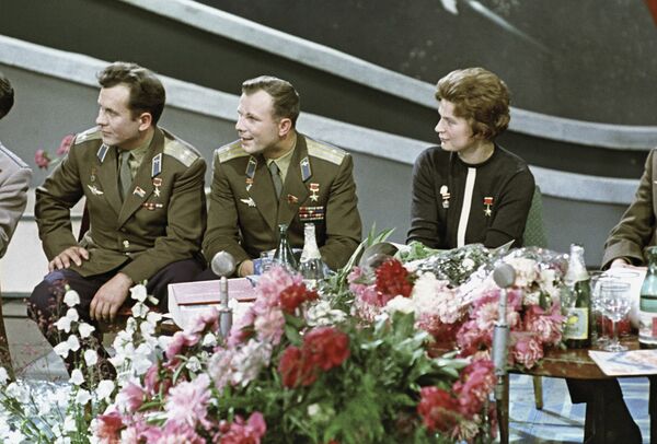 В сентябре 1963 года Гагарин посетил Париж, где принял участие в XIV Международном конгрессе астронавтики[47][48]. В октябре 1963 года вместе с В.Терешковой посетил штаб-квартиру ООН в Нью-Йорке[49].