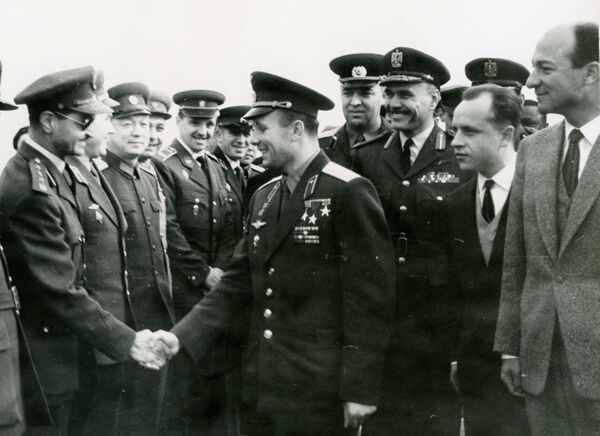 Первой зарубежной поездкой для Юрия Гагарина стала поездка в Чехословакию. Он летел на обычном рейсовом Ту-104 в Прагу. Гагарин также посетил Болгарию, Финляндиию, Великобританию, Польшу, Кубу, Бразилию с остановкой на острове Кюрасао, Канаду с остановкой в Исландии, Венгрию, Индию, Цейлон (ныне Шри-Ланка), Афганистан. В 1962 году Гагарин посетил Объединённую Арабскую Республику (Египет)