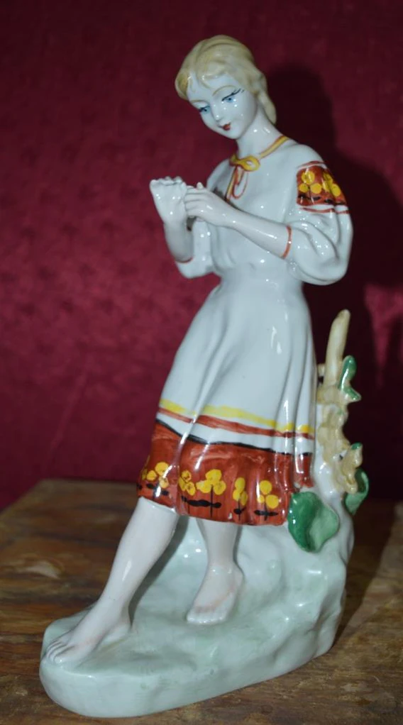 Статуэтка выполнена в уменьшенном масштабе (30×15×10 см). Изображена босоногая девушка в традиционном национальном платье. Фигура девушки прислонена к плетне. На руках у нее находится ромашка, символически используемая при гадании. Детали позы и образа отражают народные традиции и обычаи.