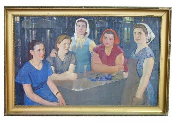 Таня и Маня · Портрет девушки (картина Мызникова) · Групповой портрет бригады коммунистического труда (картина) · У Ангары (картина) · Девушка из Подмосковья (картина) · Встреча (картина Мызникова) · Портрет С (картина) · Пейзаж с экстерьером · Мир (картина Мызникова) · На завалинке (картина) · Пляж (картина Мызникова) · Праздник русской зимы · Портрет народного артиста СССР Нестеренко · Гадание при свечах
