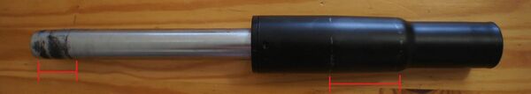 Большинство современных газлифтов делаются двухтрубными. В них кнопка находится не на штоке, а на глухом торце цилиндра.[3][1] Перетекание газа между объёмами над и под поршнем в такой пружине происходит через зазор между трубами.[3] Двухтрубная конструкция уменьшает поперечные нагрузки на шток и уплотнители, упрощает конструкцию штока.