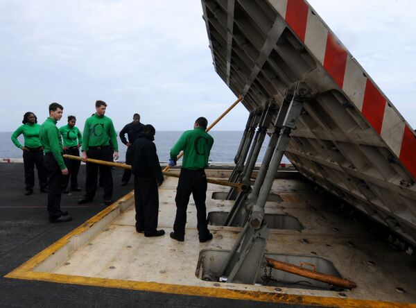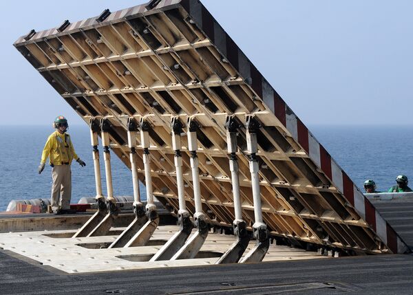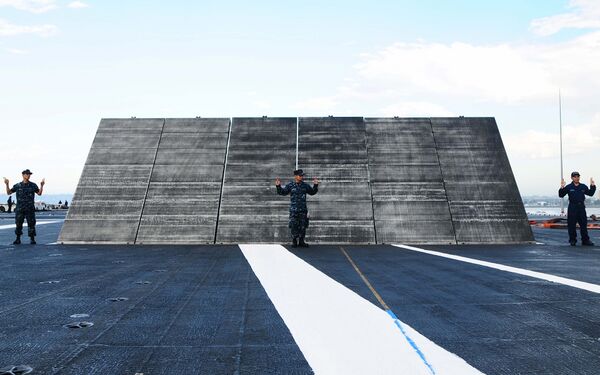 На авианосцах газоотражатели устанавливаются сзади от каждой катапульты чтобы горячие реактивные газы не могли повредить самолёты, стоящие в очереди на взлёт. Панели газоотбойников изготавливаются из термоустойчивых материалов и имеют электромеханический или гидравлический привод. В неактивном состоянии панели утоплены в настил, составляя часть сплошной полётной палубы. Во время взлёта панели поднимаются на определённый угол[7], позволяя персоналу проводить проверку и техобслуживание стоящего сзади самолёта.