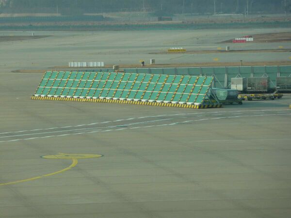 Известны газоотбойники различной степени сложности, начиная от стационарных из монолитного бетона и кончая металлическими или стекловолоконными панелями, которые поднимаются и опускаются при помощи гидропривода и искусственно охлаждаются. На аэродромах и в ремонтных мастерских газоотбойники часто совмещаются со звукопоглощающими барьерами.