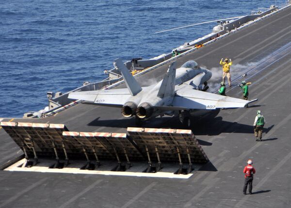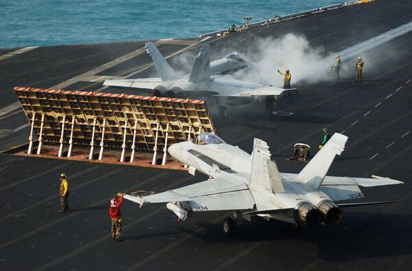 Газоотбойники начали устанавливать на авианосцах в конце 1940-х и начале 1950-х годов, с появлением реактивных палубных самолётов. Первым авианосцем, оснащённым отражателями, стал CV-34 «Орискани» типа «Эссекс», на котором отражатели были установлены во время модернизации в октябре 1947 – августе 1951 года[8].