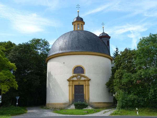 В северо-восточном углу Английского сада, примыкающего к зданию замка, расположена круглая ротонда Св. Крестовой капеллы (Hl.Kreuzkapelle).