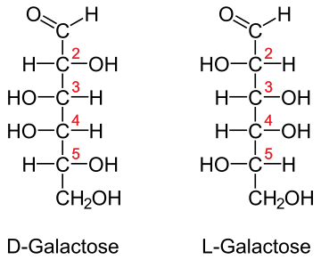 (2R,3S,4S,5R)-2,3,4,5,6-пентагидроксигексаналь (D-галактоза), (2S,3R,4R,5S)-2,3,4,5,6-пентагидроксигексаналь (L-галактоза) |