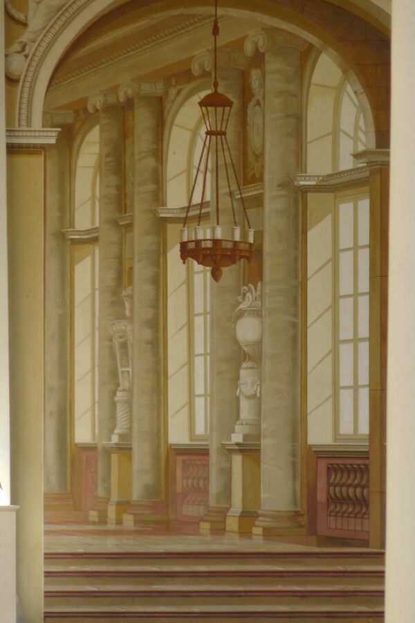 «росписи этой галереи никак нельзя восстанавливать ввиду того, что сохранились лишь отдельные небольшие куски её и к тому же пострадавшие от пожара. Попытки произвести восстановление её путем дополнения, а тем более прописки могут привести лишь к тому, что мы получим грубую фальшивку, в которой потеряются и те фрагменты, которые сохранились…»