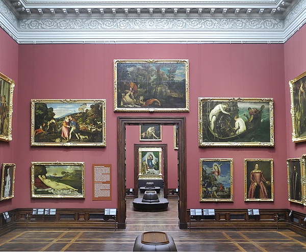 В отличие от многих других музеев, Дрезденская галерея избегает новшеств, сохраняет исторический тип развески картин и гордится их потемневшими от времени позднебарочными рамами[3].