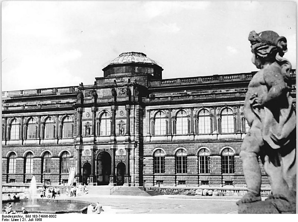 В 1945 году советские войска вывезли из Дрездена в качестве трофеев значительную часть найденного в шахтах собрания. Судьба 450 картин собрания неизвестна. На протяжении 10 лет повреждённые сыростью шахт картины из Дрездена реставрировались и хранились в ГМИИ им. Пушкина. В 1955 году в ходе визита правительственной делегации СССР в Германскую Демократическую Республику по настоянию Н. С. Хрущёва Дрездену были возвращены 1240 картин[4]. В 1956 году заново открылась часть галереи, построенной Земпером, а к 1960 году было восстановлено уже всё здание целиком, и город снова увидел лучшие произведения живописи.