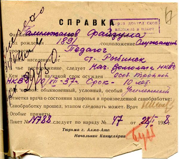 Файзулла Галимжанов подвергся репрессиям по политическим мотивам: