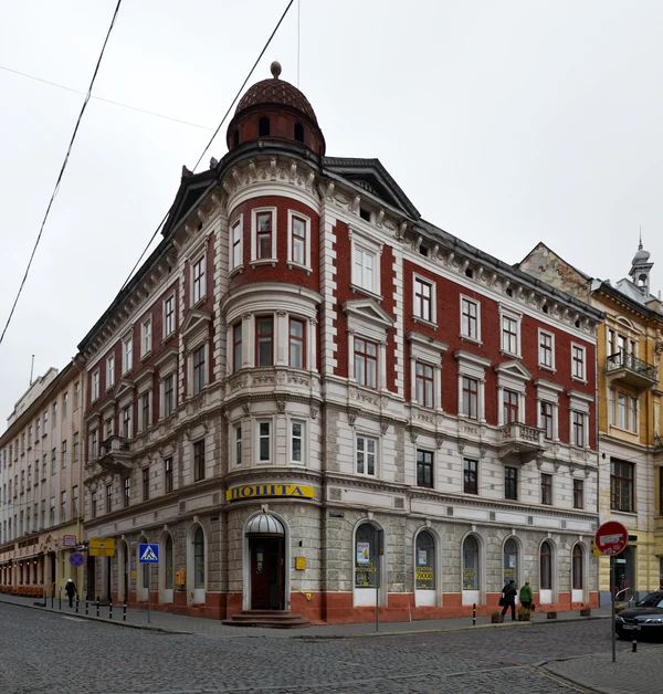 - Галицкая площадь, 7 / Валовая улица, 14 — здание галицко-русского Общества имени Качковского, построено в 1888 г. по проекту Винцента Кузневича.