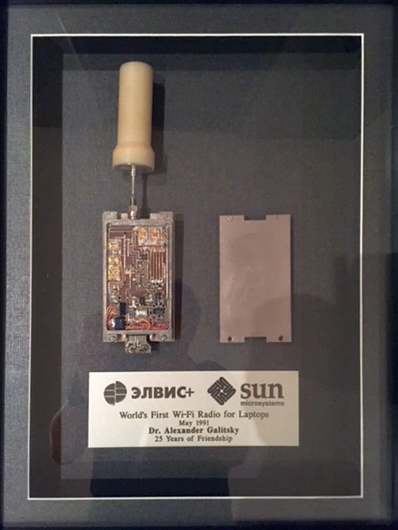 Сотрудничество «ЭЛВИС+» с компанией Sun началось в рамках контракта на реализацию протокола 802.11 в PCMCIA-совместимом устройстве для объединения мобильных компьютеров в беспроводную сеть, позднее названную Wi-Fi. В 1993 году «ЭЛВИС+» опередил других привлечённых Sun подрядчиков, включая Motorola, и представил разработку уже в 1993 году. Это окончательно убедило Sun в целесообразности инвестиций в российскую компанию. Сделка по покупке 10 % «ЭЛВИС+» за 1 миллион долларов состоялась в марте 1993 года и стала первой инвестицией в истории компании Sun[10]. С