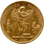 Во времена французской революции XVIII века был объявлен конкурс на рисунок новой монеты. После того, как Огюстэн Дюпре предложил отчеканить гения Франции, пишущего на жертвеннике,— сообщается в отчёте жюри конкурса 1791 года, — члены комитета посоветовали прибавить с одной стороны жертвенника петуха — эмблему бдительности. Проект Дюпре с добавленным к нему петухом и был использован для чеканки двадцатифранковых монет. Петуха, изображённого на монетах, французы, считавшие галлов своими предками, осмыслили как «галльского петуха» и стали считать своей национальной эмблемой.