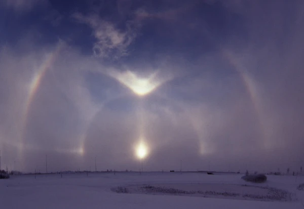 В романе Григория Адамова «Изгнание владыки» (1946) так описывается гало в Арктике: