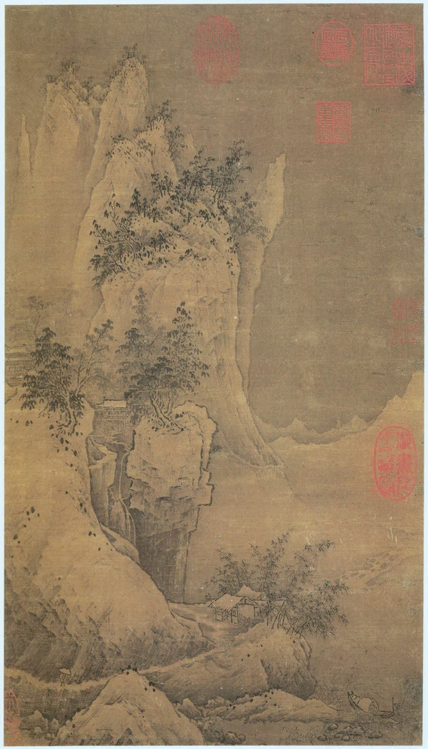 - 2. Снега вокруг горных потоков. Альбомный лист. Существуют другие версии этой композиции, одна приписывается Сяо Чжао (коллекция Вана), другая Ся Гую. Гугун, Тайбэй.