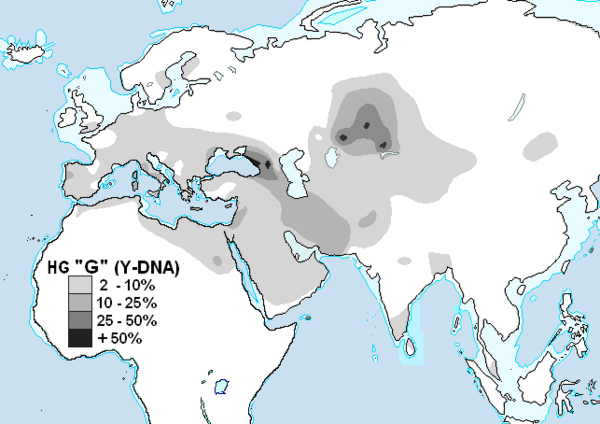 В ходе неолитических миграций гаплогруппа G распространилась с Передней Азии по Европе и на восток до Индостана.
