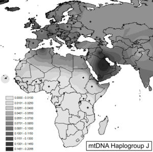 - ↑ Map of mtHaplogroup J. (Captions in Russian/Cyrillic)