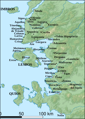 - ↑ Hecataeus of Miletus FGrHist 1 F 224 = Stephanus of Byzantium s.v. Γάργαρα, Hellanicus of Lesbos FGrHist 4 F 160 Myrsilos of Methymna FGrHist 477 F 17 = Strabo 13.1.58, cf. 13.1.5.