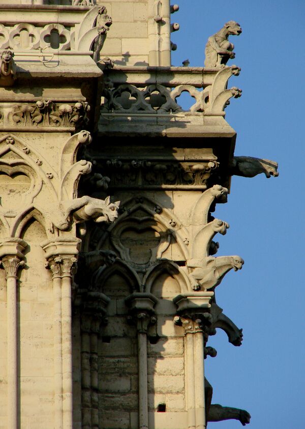 Необходимо отметить, что гаргуйль может вовсе не иметь скульптурной обработки: всюду, где этот элемент не просматривается с важных видовых точек, он решён минимальными средствами: даже в соборе Парижской Богоматери множество гаргуйлей представляют собой простые вытесанные из камня лотки[30].