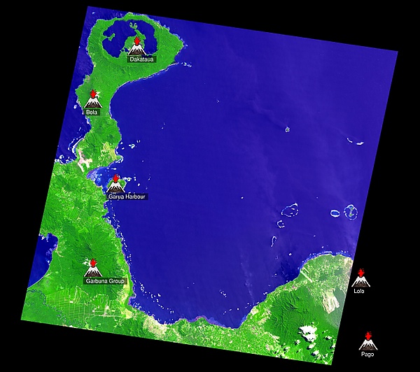 - Спутниковые снимки агентства НАСА в районе вулкана Гаруа-Харбор (недоступная ссылка — история).