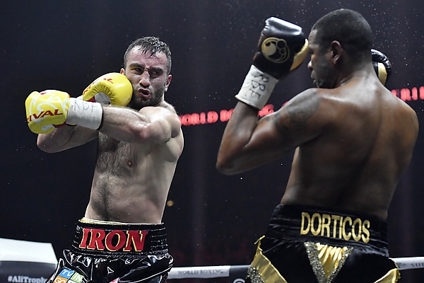 3 февраля 2018 | TKO12 (12), 2:43 | Объединительный бой за титулы чемпиона мира по версиям IBF (2-я защита Гассиева) и WBA (2-я защита Дортикоса) в 1-м тяжёлом весе. Дортикос дважды в нокдауне в 12-ом раунде. Полуфинал турнира WBSS. | ||