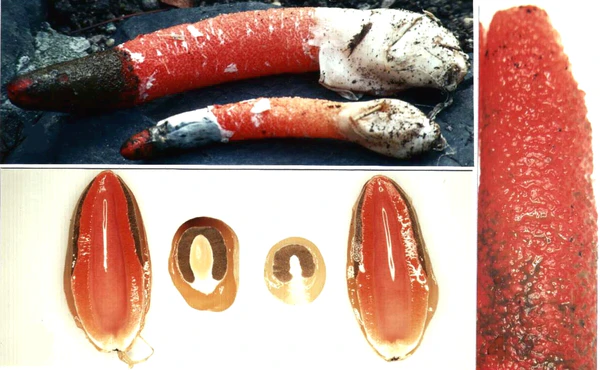 - Одношляпочный — глеба формирует первую кольцевидную впадину под вершиной перидия, затем трама дифференцируется на столбик и шляпку, между ними образуются ветвящиеся пластинки, разделяющие гимениальные камеры. После созревания столбик прорастает в мощный фаллюсовидный рецептакул (роды Phallus, Mutinus, Lisurus)