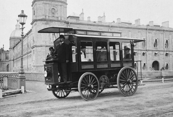 В Гатчине в 1899-1902 году демонстрировался и испытывался первый в России электротранспорт - монорельс, электромобиль и электробус.