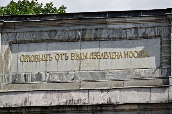Пилоны ворот украшены композитными колоннами на высоких пьедесталах[5]. Капители ордера составлены из цветочных венков, гирлянд и волют. Над антаблементом расположен аттик с пилястрами[9] и с мемориальной надписью[5] — с одной стороны слова В. И. Майкова «Орловым от беды избавлена Москва», с другой — более подробный рассказ об эпидемии (вероятно, составленный самой Екатериной II[3]). В отделке сочетаются розовый тивдийский мрамор колонн и филёнок с голубовато-серым мрамором остального сооружения[2], основание ворот сделано из блоков сумерского красного камня[9].