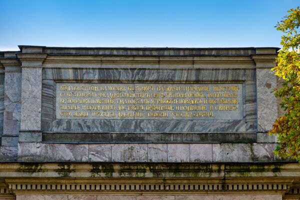 Надпись на аттике со стороны парка