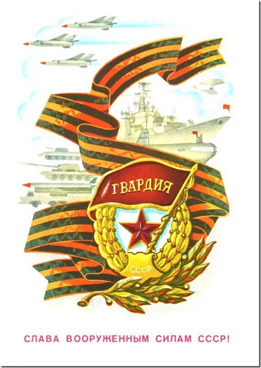 Гвардейским частям СССР вручались Боевые знамёна с прикреплённой к ним гвардейской лентой.