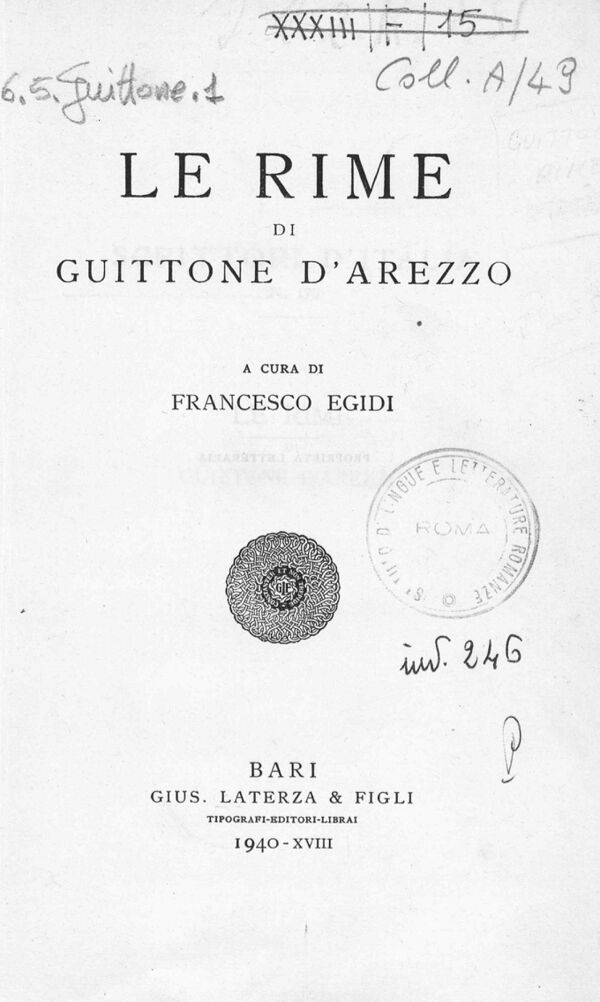 - Guittone d'Arezzo. Rime. — Bari: Laterza, 1940
