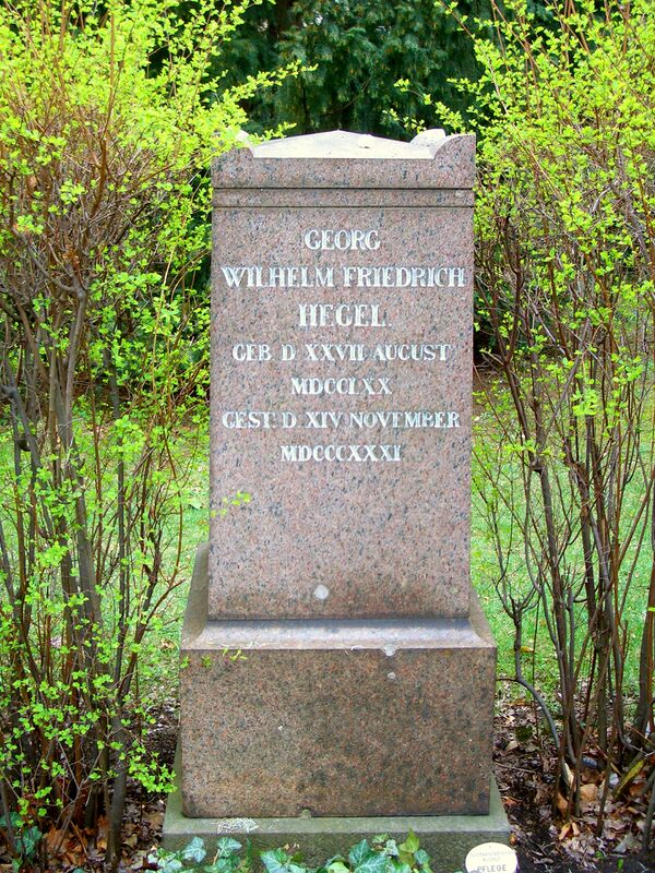 Георг Вильгельм Фридрих Гегель (нем. Georg Wilhelm Friedrich Hegel (немецкий: [ˈɡeːɔʁk ˈvɪlhɛlm ˈfʁiːdʁɪç ˈheːɡl̩])[5][6]; 27 августа 1770 — 14 ноября 1831) — немецкий философ. Он считается одной из самых важных фигур в немецком идеализме[7] и одним из основоположников западной философии, чьё влияние распространяется на весь спектр современных философских проблем, от эстетики до онтологии и политики, как в аналитической, так и в континентальной традиции[7][8].