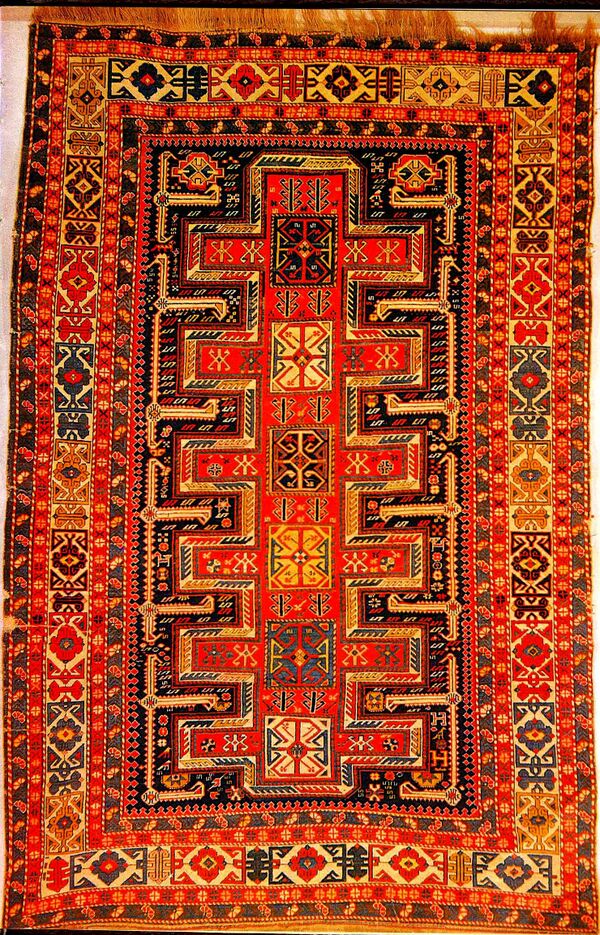 Композиция серединного поля ковра значительно отличается от других азербайджанских ковров. В нём цепь «дарагы» (с азерб. — «гребёнка»), направляясь слева и справа серединного поля к центру, образует новые четырёхугольники, которые в свою очередь чаще всего покрываются шебекеобразной сетью. На каждой из них в зависимости размещаются многоугольные гели различного вида и размера. В большинстве случаев их внутренняя часть украшается крестообразными элементами, а внешняя — крючкообразными линиями. Элемент «зенджире», который окружает серединное поле в этих коврах это слово аллах, написанное арабской вязью почерка куфи, которое позже потеряло своё значение и стало элементом декора. В углах серединного поля помещают треугольный элемент «Елпик» (с азерб. — «веер»). Изредка в этих коврах встречаются «джаги», окружающие поле. Бордюр заимствован из ковров, входящих в другие группы[1].