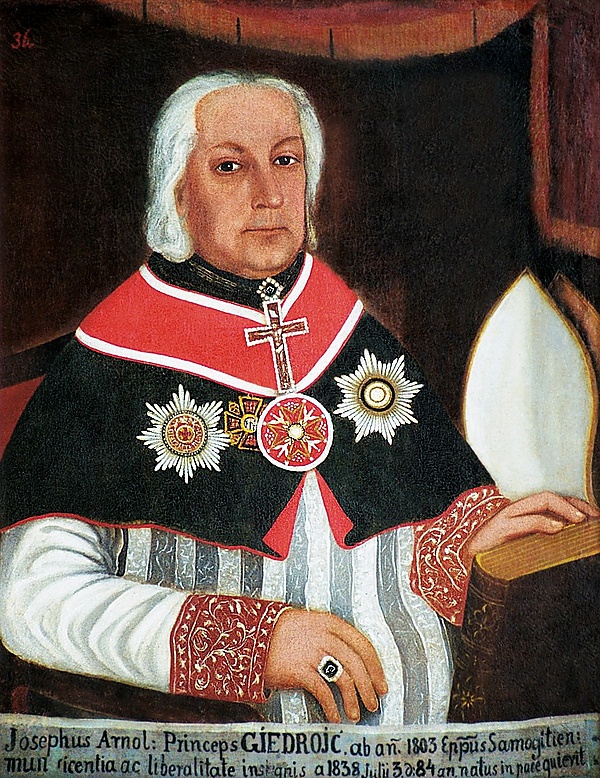 Князь Юзеф Арнульф Гедройц (24 июля 1754, Коссаковщина[d], Великое княжество Литовское — 17 июля 1838, Альседжяй[d], Литовско-Виленская губерния) — епископ Жемайтийский; публицист, просветитель и переводчик; член Российского библейского общества.
