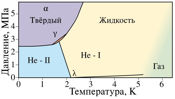 - Агрегатные состояния: жидкий гелий, твёрдый гелий.