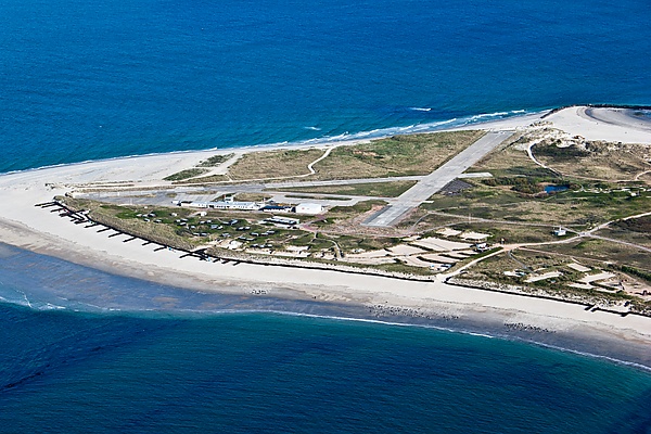 Аэродром на острове Дюне был создан во времена Нацистской Германии в рамках проекта Hummerschere. Правительство Германии расширило остров Дюне за счёт песка, чтобы построить на нём порт. Также был построен аэродром, который во время Второй мировой войны использовался в основном как запасной аэродром[1]. С апреля по октябрь 1943 года на аэродроме базировалась истребительная эскадрилья Гельголанда (позже была переименованная в 11-ю истребительную дивизию)[2]. После окончания войны Дюна и Гельголанд были оккупированы Великобританией и аэродром прекратил работу. В 1962 году аэродром был вновь открыт[1].