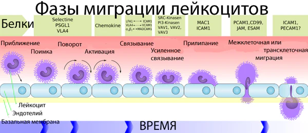 Ишемический инсульт приводит к высвобождению оксидантов, протеолитических ферментов и цитокинов в ткани мозга, что в итоге вызывает развитие цитотоксического отёка и изменение проницаемости ГЭБ[181]. В результате запускается процесс миграции лейкоцитов через эндотелий в ткань мозга, которые вызывают в том числе поражение здоровых клеток нервной ткани[182][183].