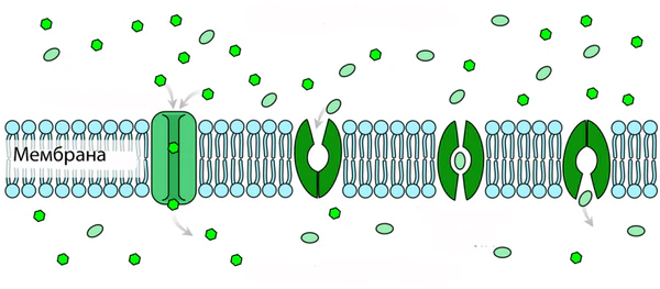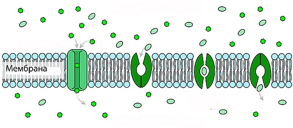 Процесс транспорта молекул через специализированные каналы осуществляется быстрее активного переноса с помощью специальных белков транспортёров. В то же время различные биологически активные вещества могут активировать или инактивировать транспортные каналы расположенные на клеточных мембранах[118].