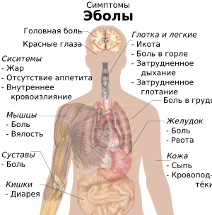 - ↑ Signs and Symptoms | Ebola Hemorrhagic Fever (англ.). CDC (27 марта 2019). Дата обращения: 13 августа 2019. Архивировано 1 августа 2014 года.