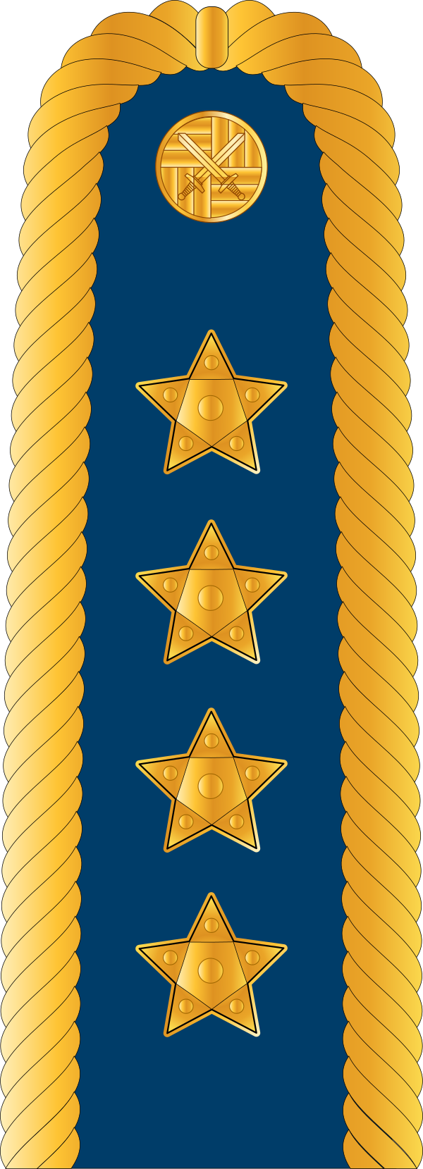Знак отличия — четыре больших золотых звезды в ряд на погоне. В литературе часто указывается как «армейский генерал».