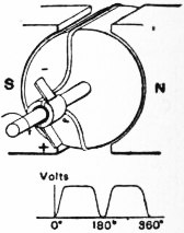 Если в контуре вращается однородное магнитное поле с равномерной угловой скоростью, то в нём индуктируется синусоидальная электродвижущая сила.