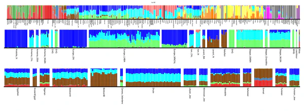 135 современных египетских мумий состояли из: 100 образцов современных египтян, взятых из исследования Пагани и др, и 35 образцов из оазиса Западной пустыни Эль-Хайез, взятых из исследования Куяновой и др.[7]. 35 образцов из оазиса Западной пустыни Эль-Хайез, население которого описывается в исследовании Куяновой и др. как смешанное, относительно изолированное, демографически небольшое, но автохтонное, уже имели относительно высокий африканский компонент к югу от Сахары[8], который более чем на 11 % превышает африканский компонент в 100 современных египетских образцах[9].
