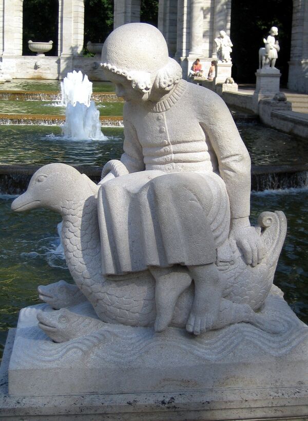 - 15 июня 1913 года в Берлине, по случаю двадцатипятилетия коронации императора Вильгельма II, в народном парке был торжественно открыт «фонтан сказок», среди 106 сказочных фигур фонтан украшали и статуи Гензеля и Гретель, «переплывавших» фонтан на уточке.