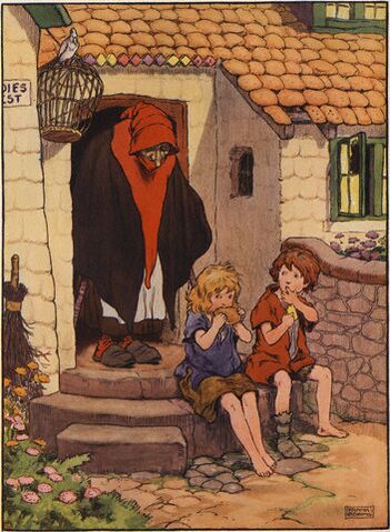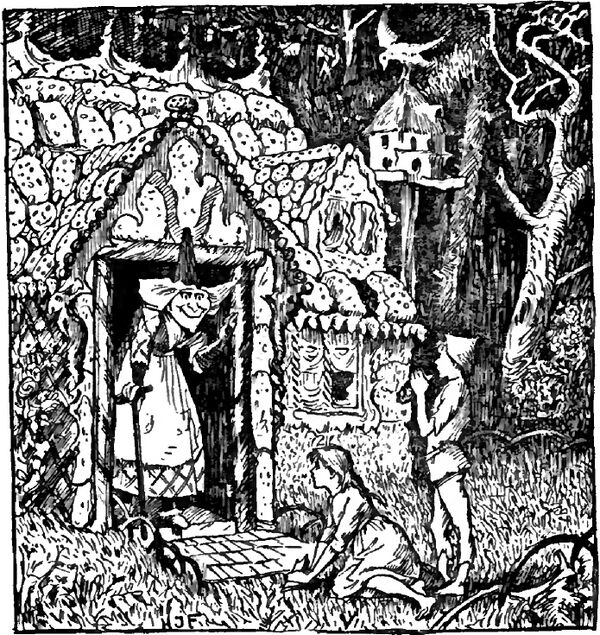 - Гензель и Гретель. Иллюстрация П. Хея (1935): «Ведьма не похожа на существо из другого мира. Это человек вполне определённой наружности»[11]